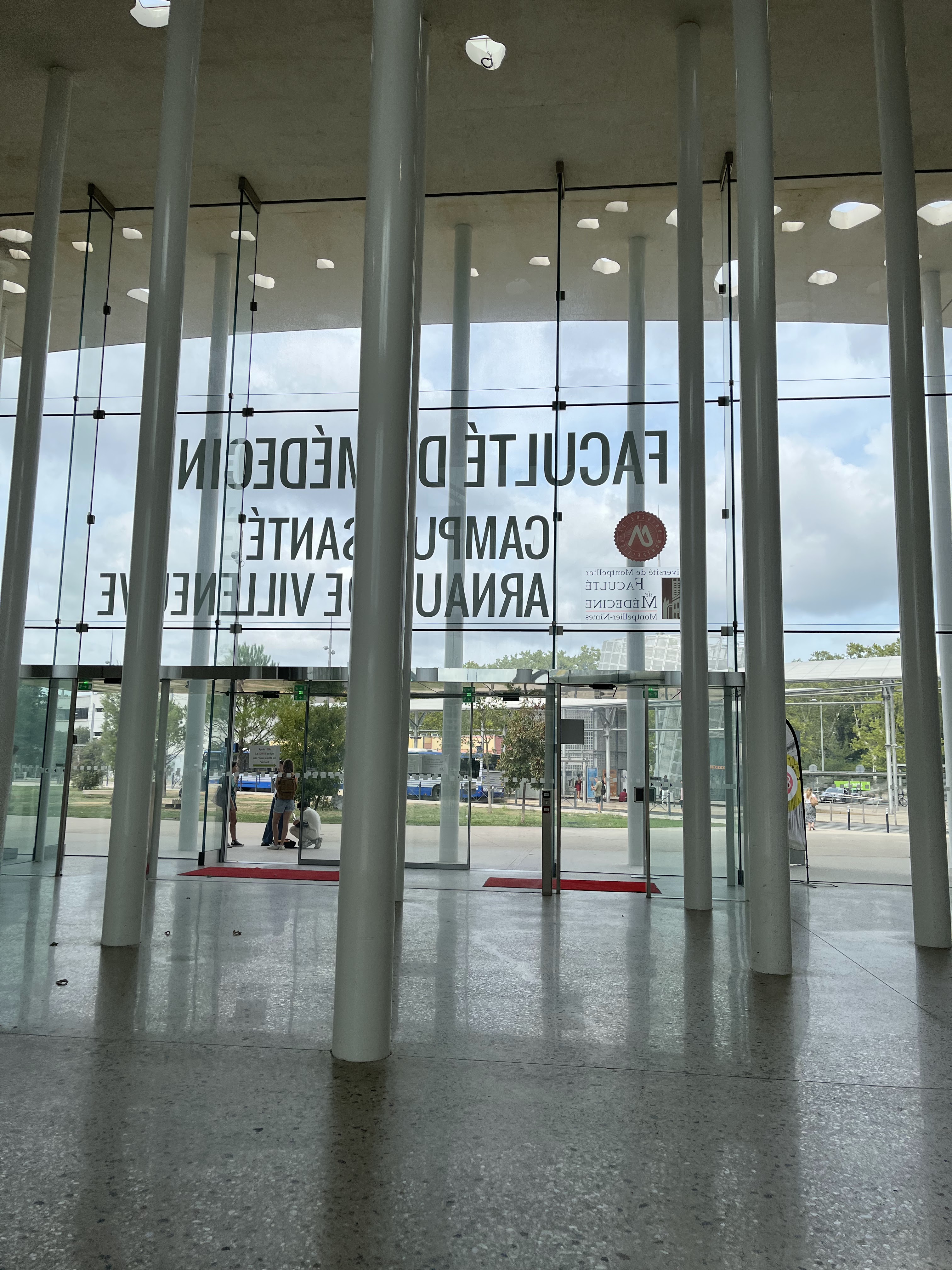 Le campus universitaire est véritablement une œuvre architecturale ! Immenses palmiers encadrant les gigantesques entrées vitrées. Le hall est magnifique avec son architecture grandiloquente. L’ambiance est pourtant feutrée : de bruits, peu de voix, la hauteur des murs qui est vertigineuse amortit le moindre bruit… Très bel endroit , très inspirant. Clairement cela donne une hauteur de l’enseignement qui y est distribué !